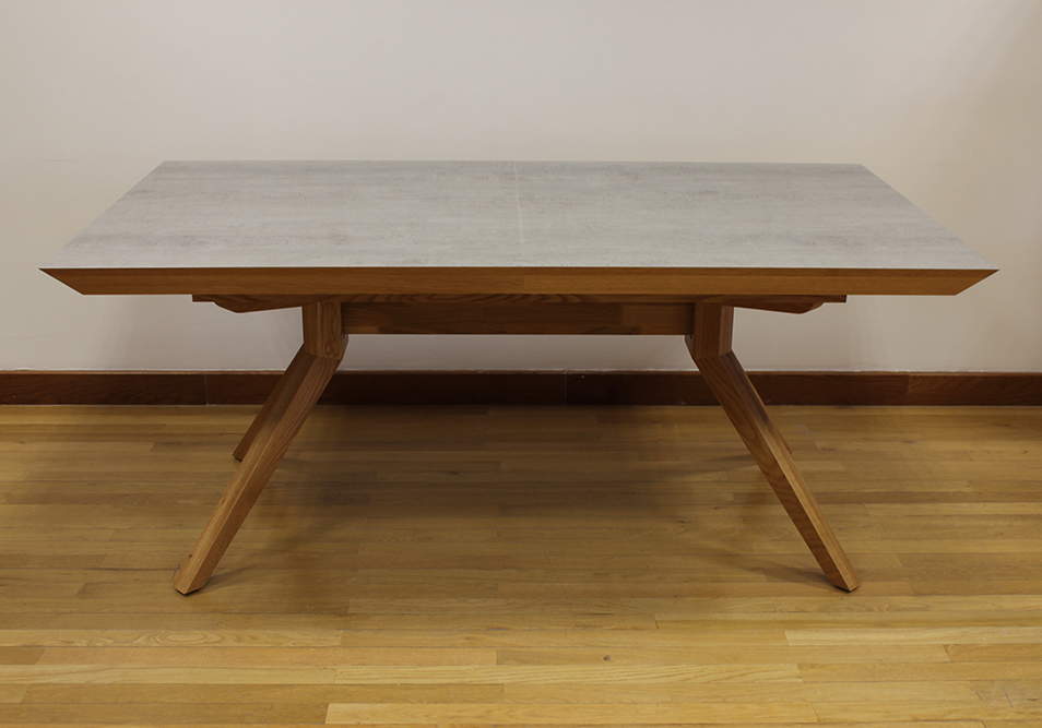 רגל אלון טבעי / פלטה + הגדלות פורמייקה דמוי בטון רגל שחורה / פלטה + הגדלות פורמייקה מבריקה